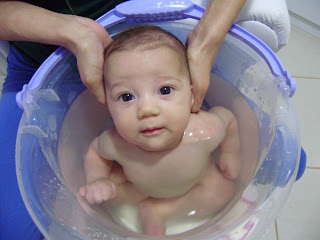 Depois de praticamente duas semanas sem banho de balde antes de dormir, Davi voltou à sua rotina do “ofurô” ao fim do dia com muito bom humor. Em BH estava muito frio e acabamos adotando um banho diário, por vota do meio dia. Apenas em alguns dias Davi tomou dois banhos. Desde 22 de julho, primeira noite de volta a Salvador, o delicioso banho foi reincorporado aos preparativos para o soninho. Adotamos a rotina do banho de balde quando Davi estava cm um mês e o banho terapêutico foi totalmente aprovada!. Engraçado, foram só 15 dias sem entrar na banheira-balde dele, mas o moleque está tão cumprido, que a cabeça já está quase fora do balde... Imagino que só dará para ele até os seis meses e que ambos sentiremos saudade deste momento de carinho e ternura...mas nada que uma banheira bem cheia não resolva!!!