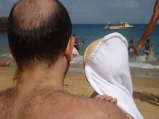 Como eu disse, foi no dia 2 de novembro, no Porto da Barra, a estreia de Davi no mar. O moleque tinha acabado de fazer sete meses e ficou bem confortável... aí vai um clique, que chamo de horizonte...ele e o pai adimirando a beleza do mar...e um vídeo, comigo, na água!