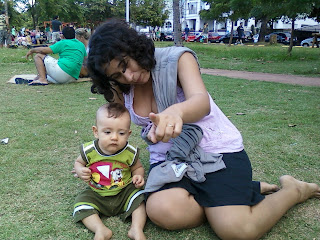 Ontem mais uma vez fomos à pracinha do fim de linha da Pituba... É programa que já faz parte da rotina do filhote que se diverte vendo as árvores, o céu, as outras crianças e cachorro. Depois de darmos uma volta com o carrinho e Davi apontar tudo com o dedinho, resolvemos sentar os três na grama. Quem sentou foi eu e Luciano porque Davi se esbaldou...Pegou folha seca, engatinhou, riu muito... Foi uma festa... É impreesionante como ele ama a natureza. E neste domingo em especial, ele não parava de apreciar a lua e nos mostrar. Ela já estava aparecendo desde cedo!